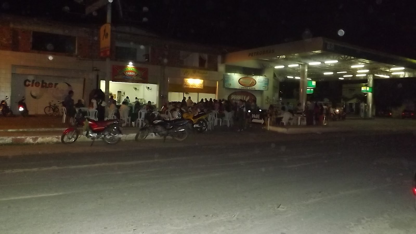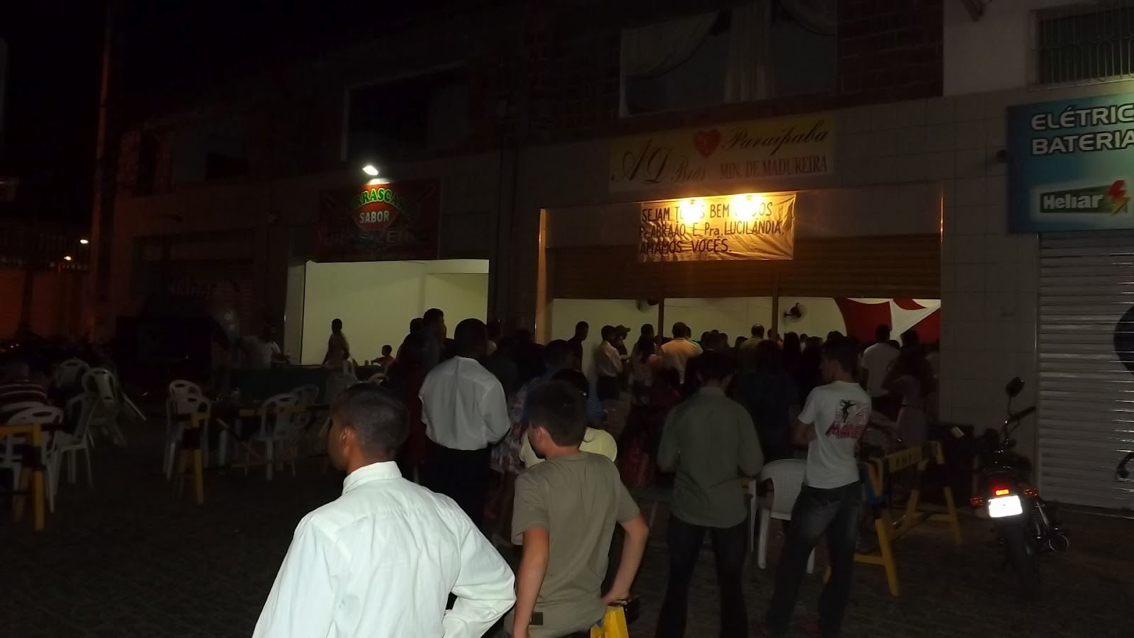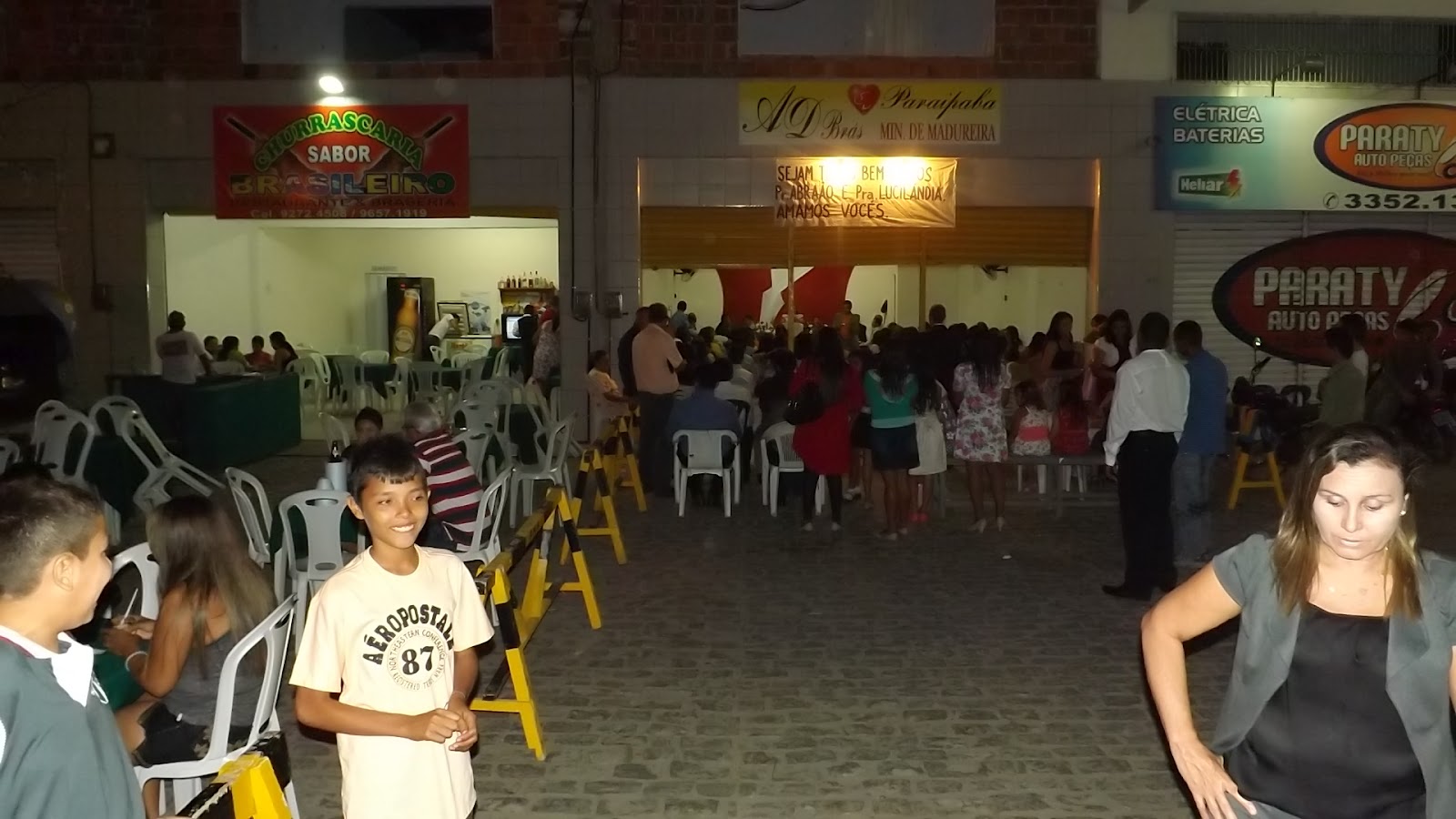 Uma churrascaria,uma Igreja evangélica e um posto de combustíveis